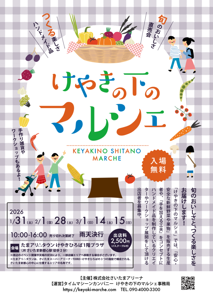 2026年1月31日(土)・2月1日(日)、たまアリ△タウンで「けやきの下のマルシェ(1月)」が開催!