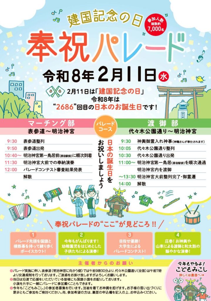 2026年2月11日(水)、明治神宮〜表参道で「建国記念の日 奉祝パレード 2026」が開催!