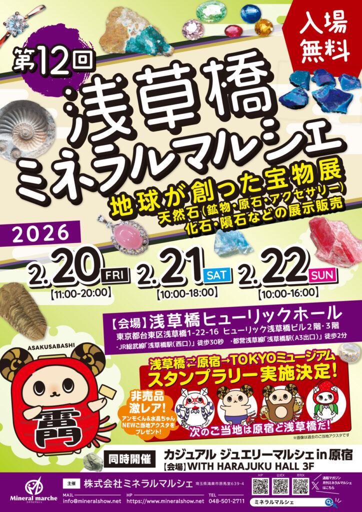 2026年2月20日(金)〜2月22日(日)まで、浅草橋ヒューリックホールで「第12回 浅草橋ミネラルマルシェ」が開催!