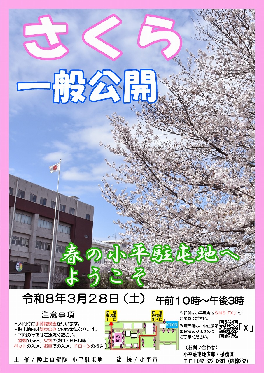 令和8年 陸上自衛隊 小平駐屯地 さくら一般公開|陸上自衛隊 小平駐屯地で2026年3月28日開催!